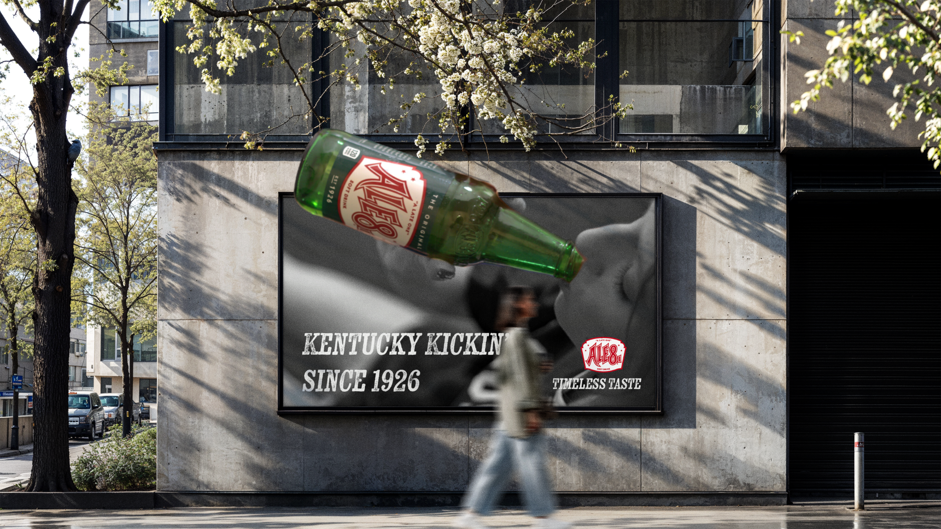 The billboard places Ale-8-One along the everyday routes of working individuals, highways, neighborhood corridors, and roads leading to work, home, and social spaces. Positioned within familiar routines, the message feels less like an interruption and more like a reminder. Outdoor works especially well for “Kentucky Kickin’ Since 1926” because of its simplicity and repetition. A bold, confident line paired with a recognizable bottle reinforces heritage and brand recall in moments when viewers aren’t actively seeking advertising, just moving through their day.