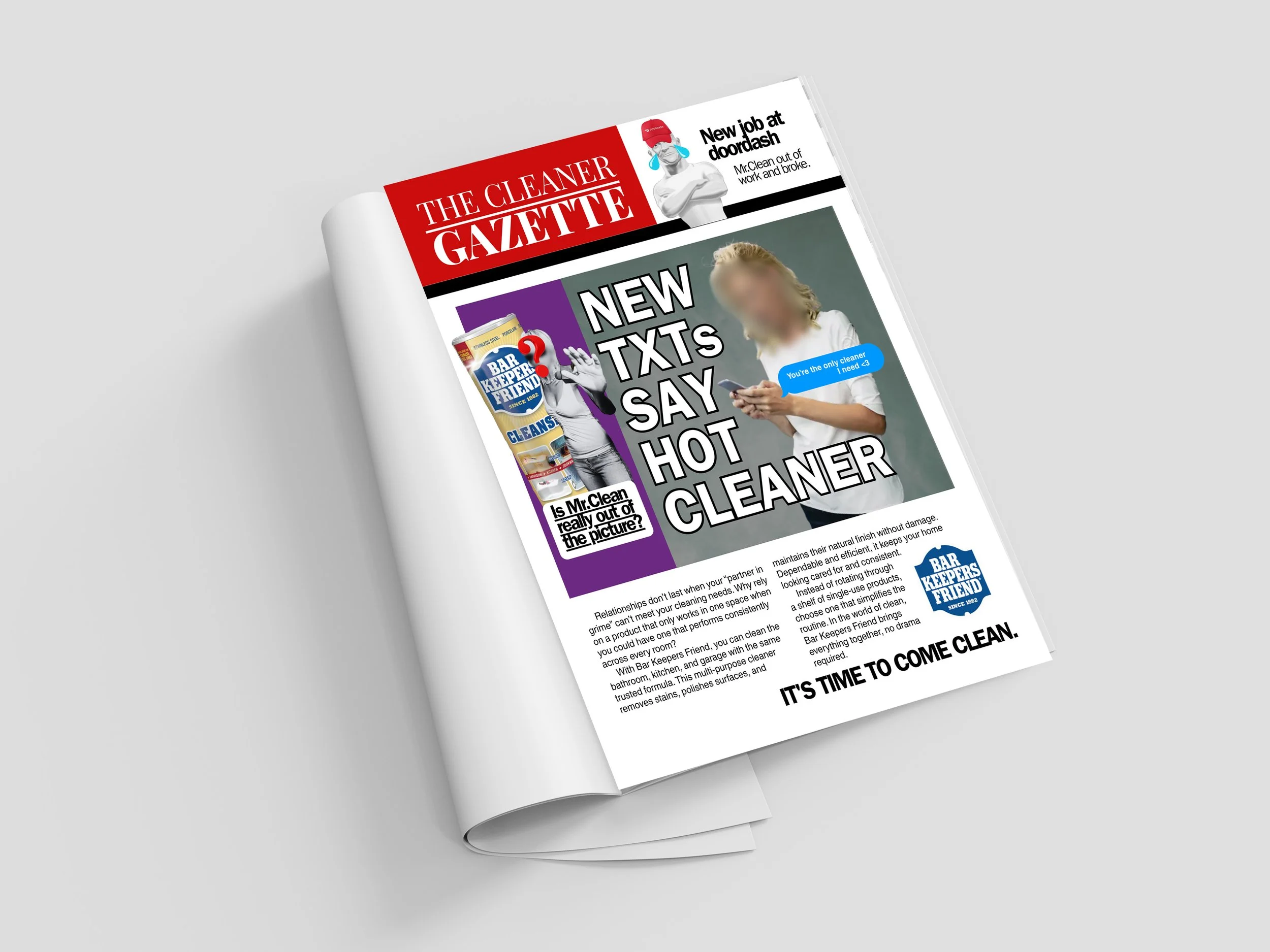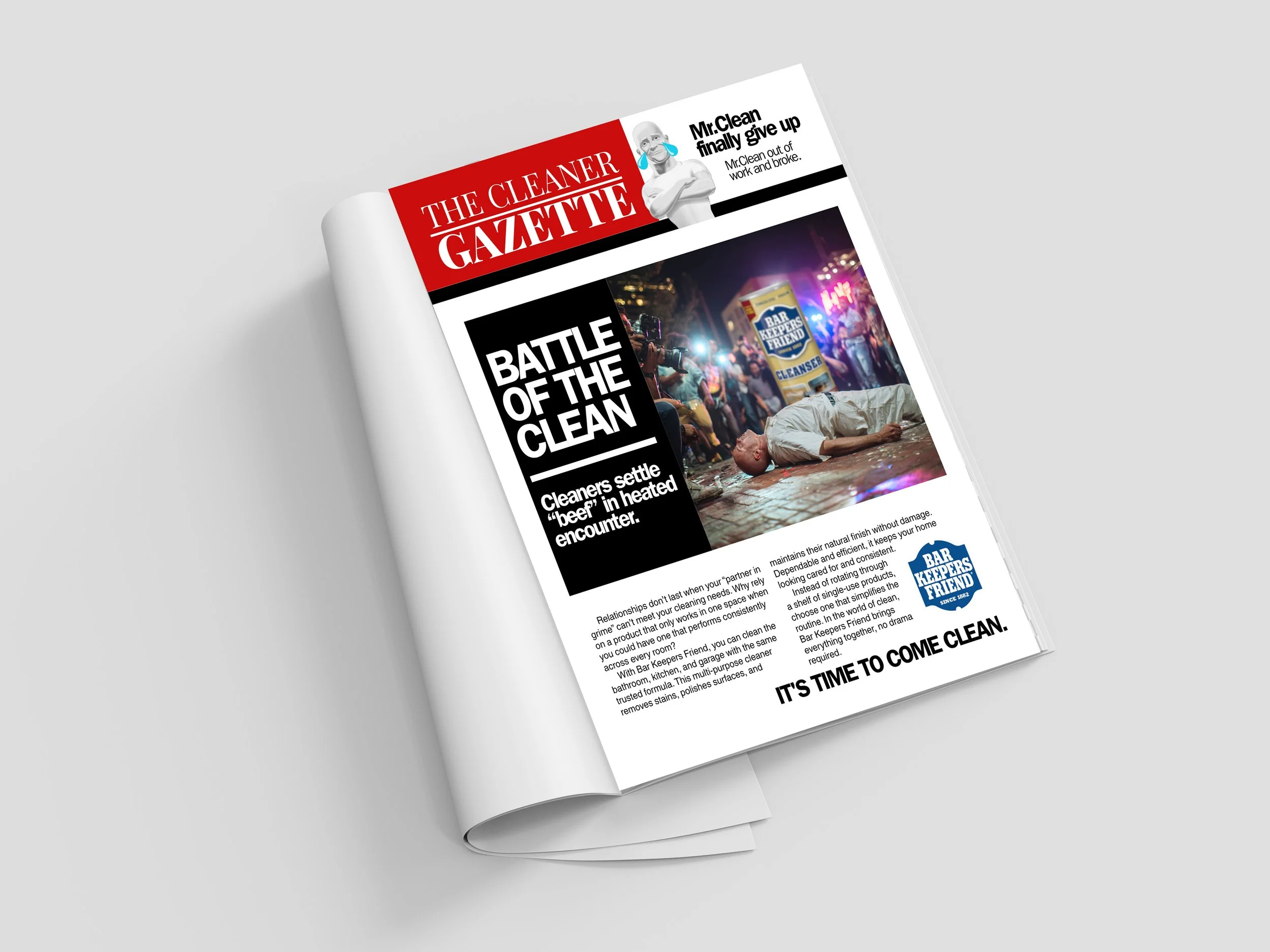 “It’s time to come clean” is a tabloid-style campaign exposing how college students are dumping Mr. Clean and Scrub Daddy for Bar Keepers Friend. Playing on campus gossip, it shows that one powerful multi-surface cleaner can replace a shelf of products. College is messy, so it’s time to come clean with the only product you really need.